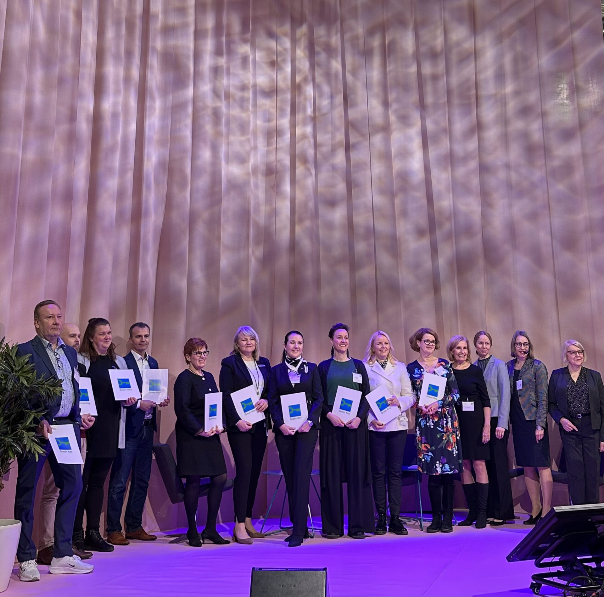 Kymmenvuotistaivalta juhlimme Matkamessuilla jakamalla kymmenennet sertifikaatit 10 vuotta mukana olleille hotelleille. Lisäksi jaoimme kunniamaininnat aktiivisesti vuosien varrella vastuullisuustyöhön osallistuneille henkilöille.